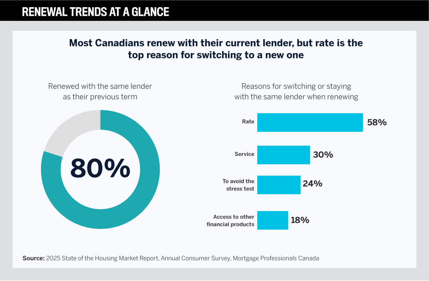 Switching gains steam: Brokers are leading the switch trend, especially among uninsured borrowers now exempt from stress test requalification.