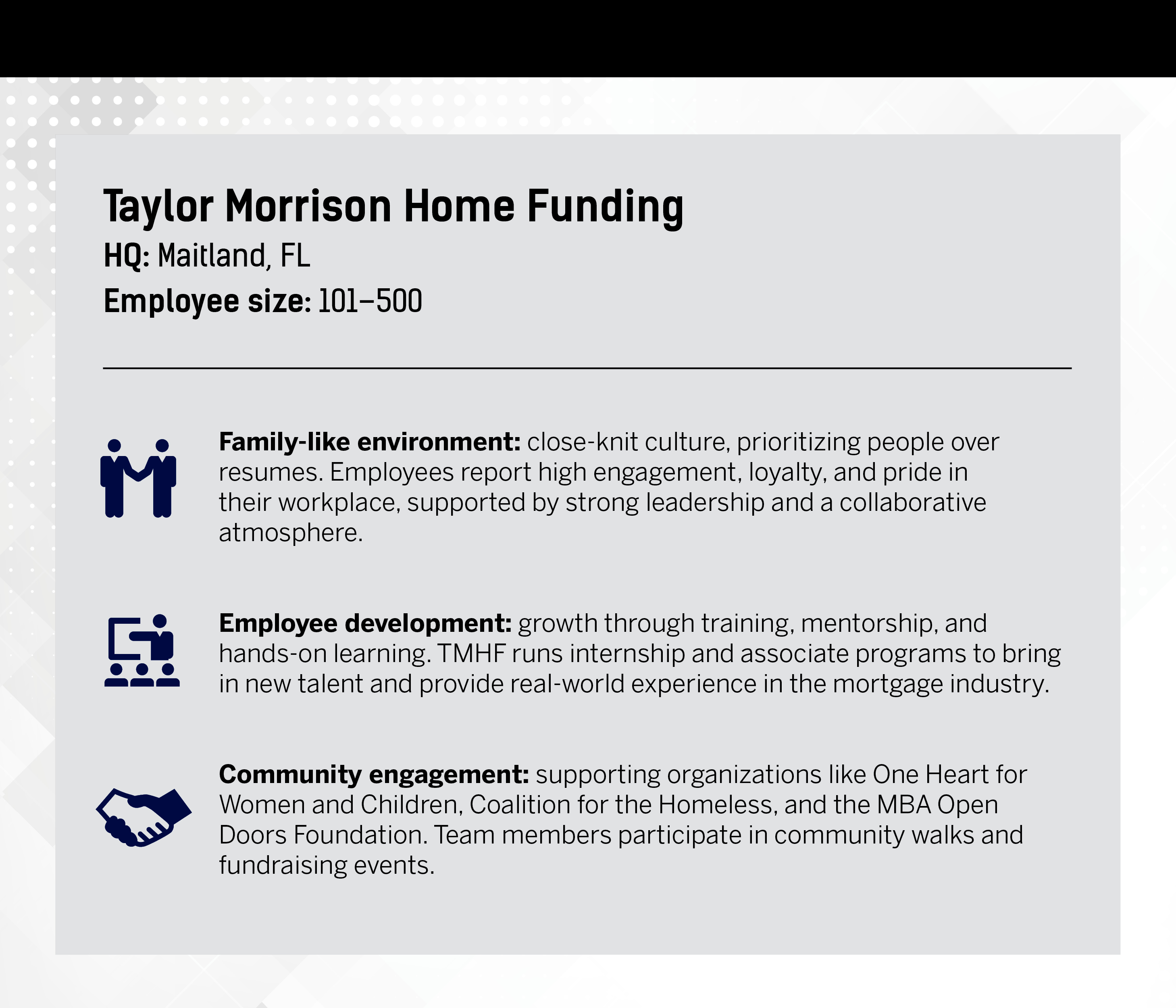To help recognize and narrow down the nominations for the Top Mortgage Employers 2025 in the United States, MPA invited organizations to fill out an employer form highlighting their various offerings and practices. Employees of the nominated companies were then asked to take an anonymous survey evaluating their workplace based on eight key factors: compensation, benefits, reputation, culture, advancement, innovation, sustainable programs, and DE&I.
