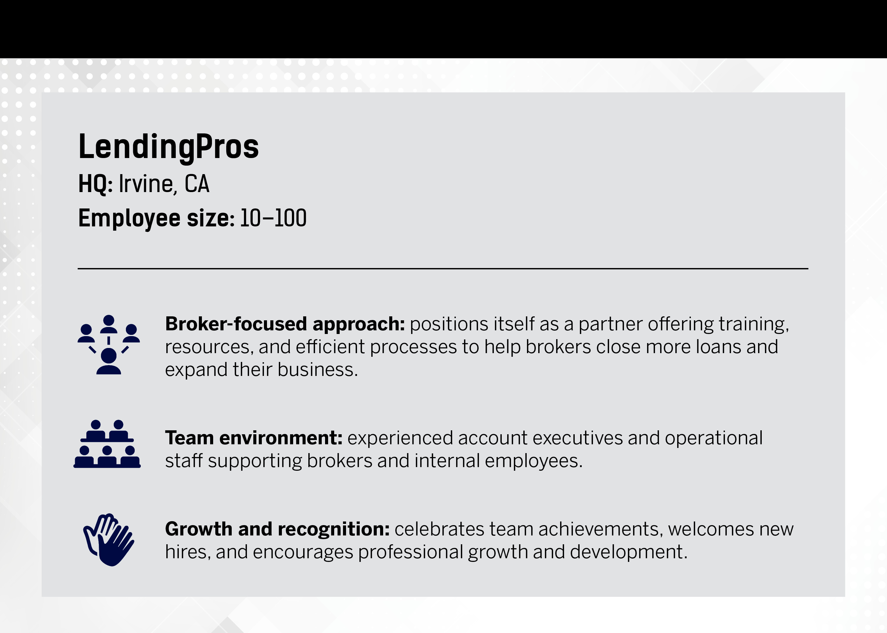 And she also shares that employee development moves the needle. “The most effective practices I’ve observed include skill-based hiring and comprehensive training programs,” adds Saunders. “Mentorship and professional development are game changers. Employers who properly train their employees and help guide them into becoming better loan officers generally succeed.”