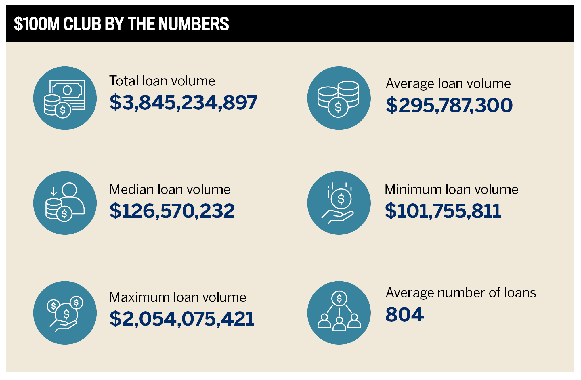 With rates still relatively high, loan originators have had to compete for a shrinking pool of business. The $100M Club has excelled in rolling up its sleeves and rising to the challenge.