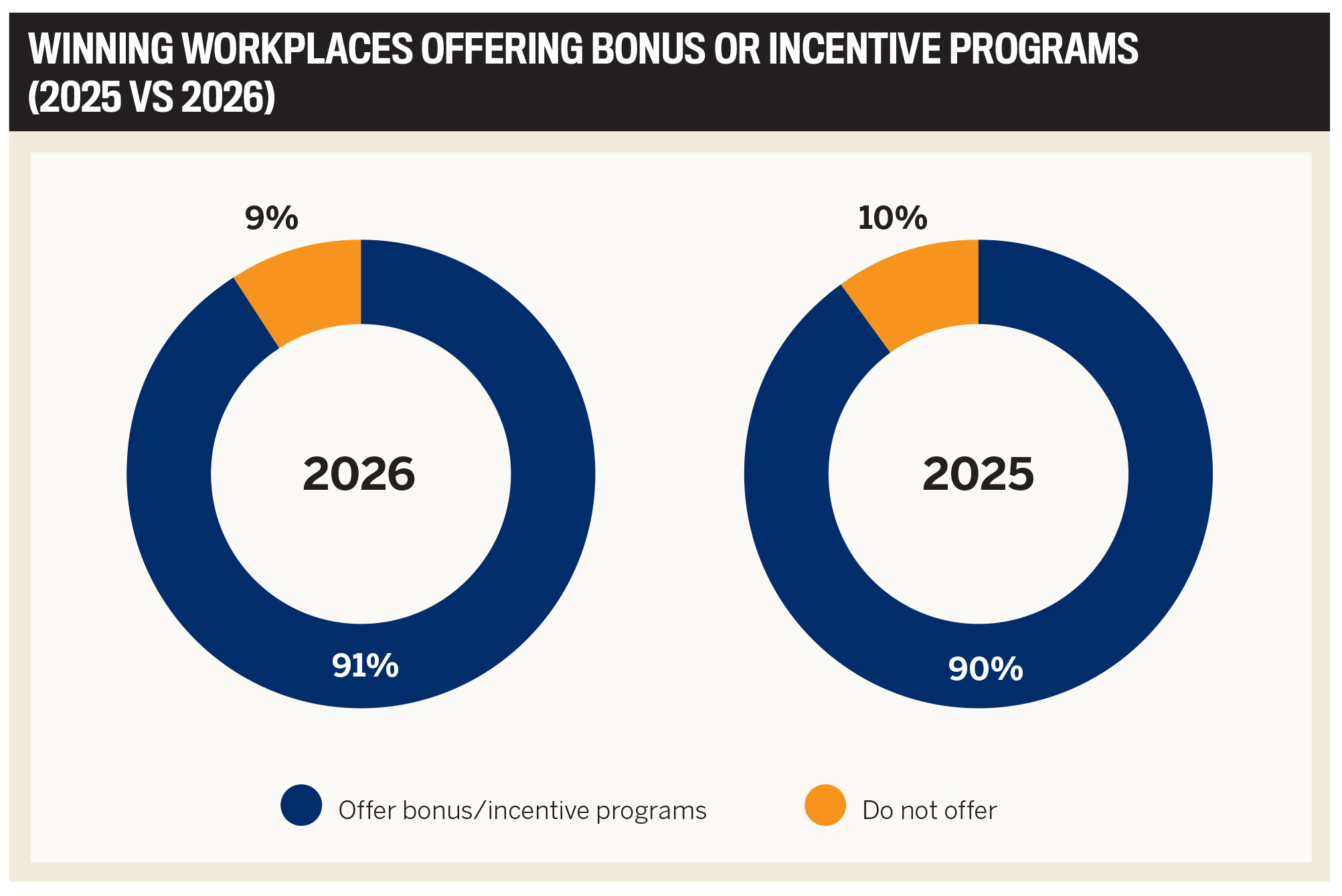 Takeaway: Incentive compensation remains a near-universal feature among Top Mortgage Employers. The stability year over year suggests performance-linked rewards are embedded in the sector’s employment model and form part of the core compensation structure employees expect.