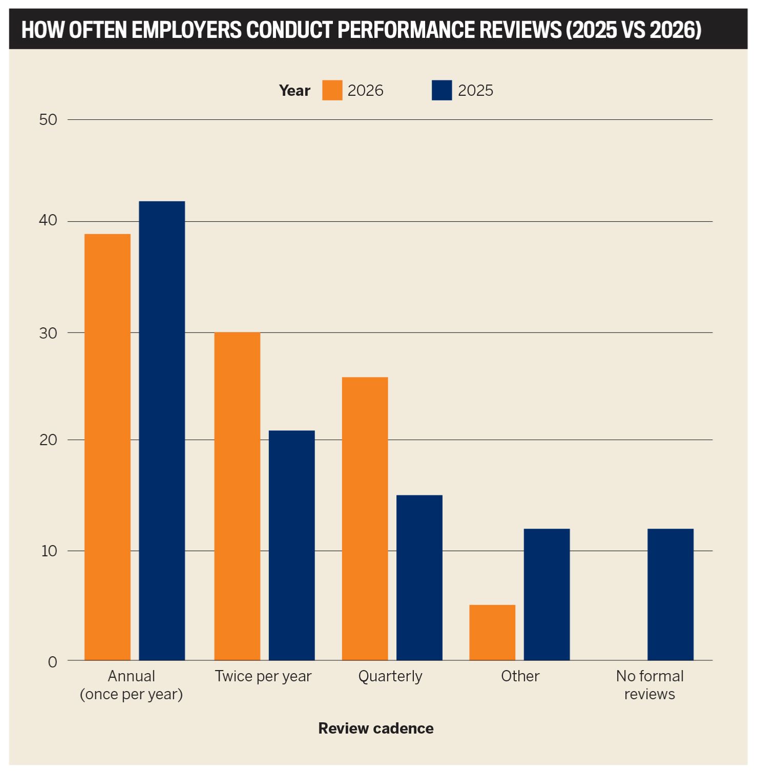 Takeaway: The comparison points to a move toward more structured and more frequent feedback. Fewer organizations rely on informal approaches, and the share conducting quarterly or twice-yearly reviews has increased. As development and recognition rank highly in employee priorities in 2026, more regular performance conversations are becoming part of how leading mortgage employers support and retain their teams.