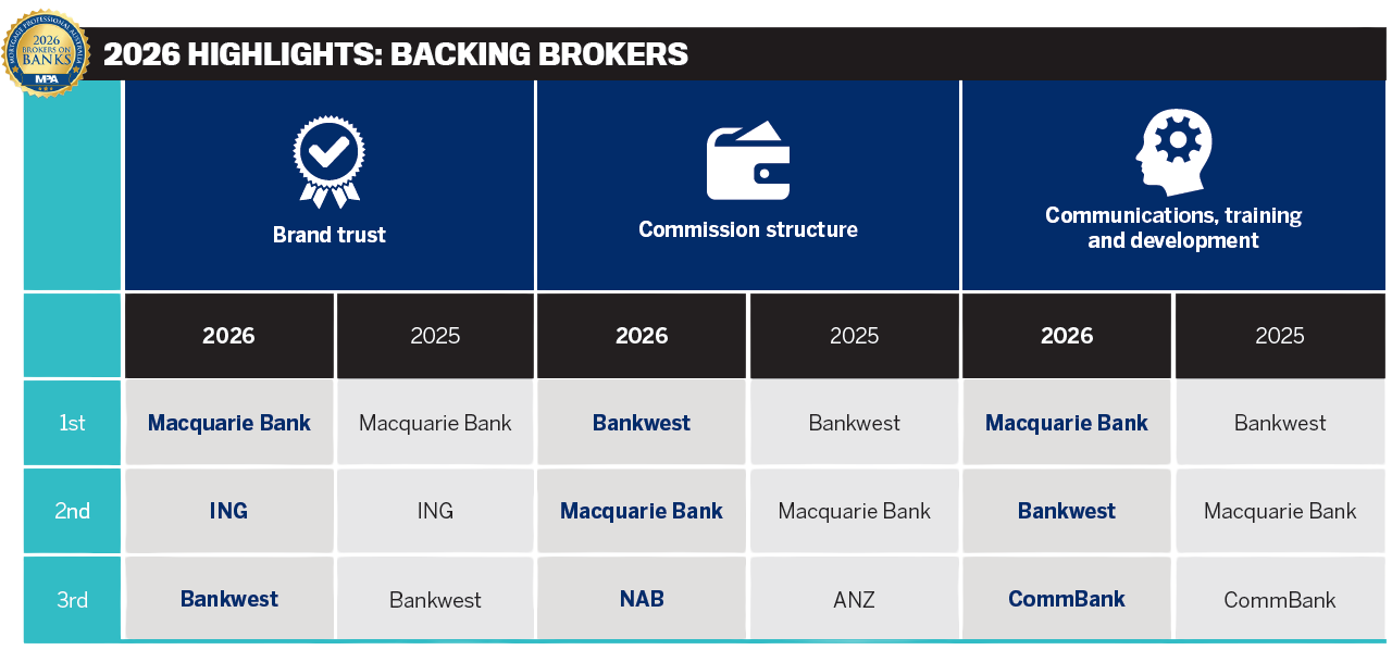Macquarie Bank retained second place, reinforcing that consistent policy remains central to broker loyalty.