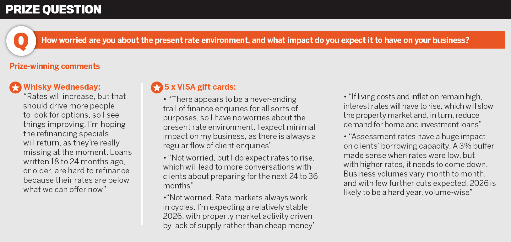 Brokers are calm about the rate environment, with about half describing it as part of a normal cycle. Many say rate moves generate client conversations, and enquiries continue regardless of settings.