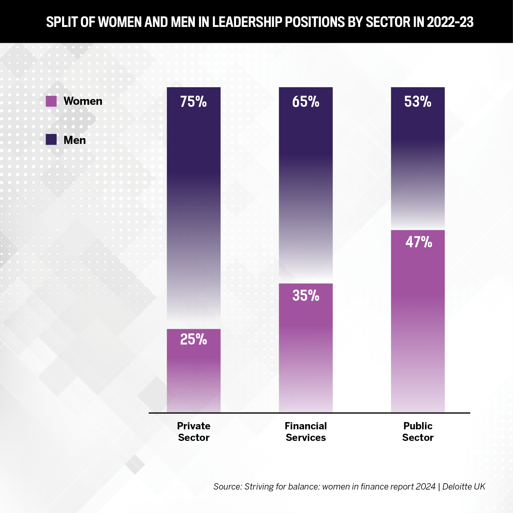 in the private sector, 25% of leadership positions are held by women, while in financial services, the figure is 35%