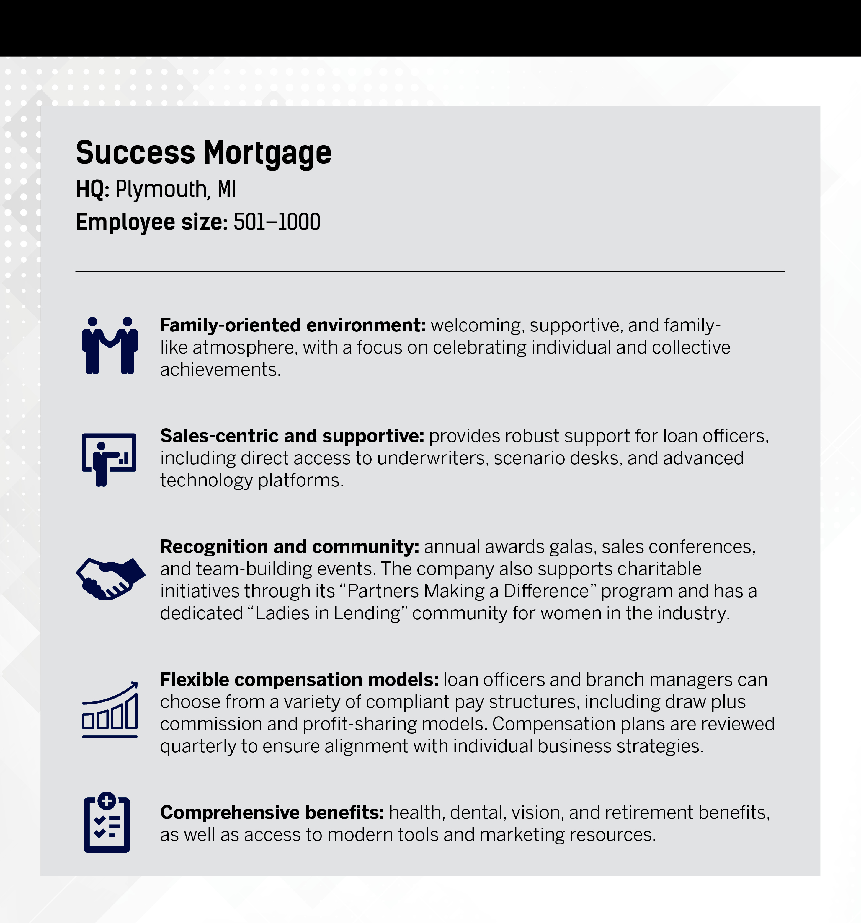 The rise in the relative importance of benefits and reputation, even if modest, is no surprise to Valerie Saunders, chief executive strategist at the National Association of Mortgage Brokers. “The mortgage industry operates on trust and relationships, and that dynamic extends directly to our employment relationships,” she says. “When skilled professionals are evaluating opportunities, they’re looking far beyond base salary and commission structures. In an industry where your professional reputation follows you throughout your career, people are incredibly cautious about associating with firms that might damage their standing.”