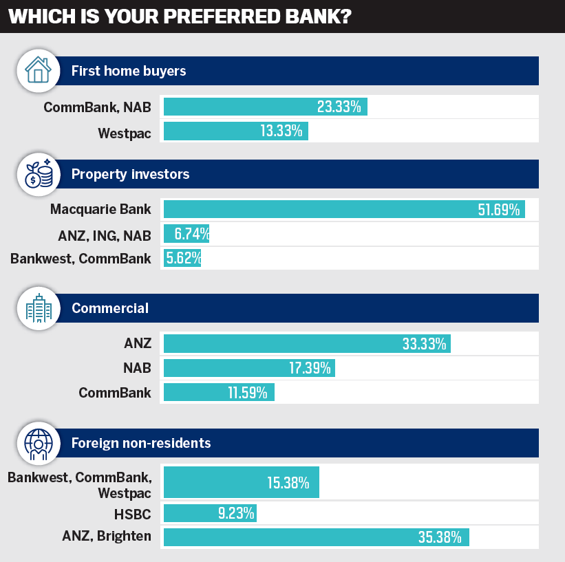 Westpac held third place for both diversification opportunities and product range. Brokers again named it among their preferred banks for first home buyers and foreign non-residents.